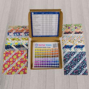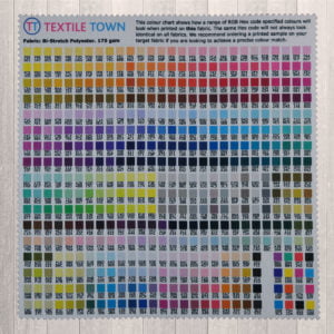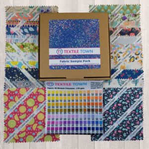 This handy sample box contains printed pieces of all of our printable fabrics. It comes with a voucher giving you 10% off your first printed fabric order (valid for 30 days). It comes with a free fold out colour chart showing how 400+ different hex RGB colour codes will look when printed onto one of our most popular fabrics.