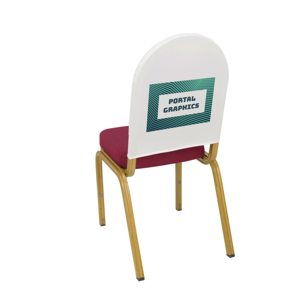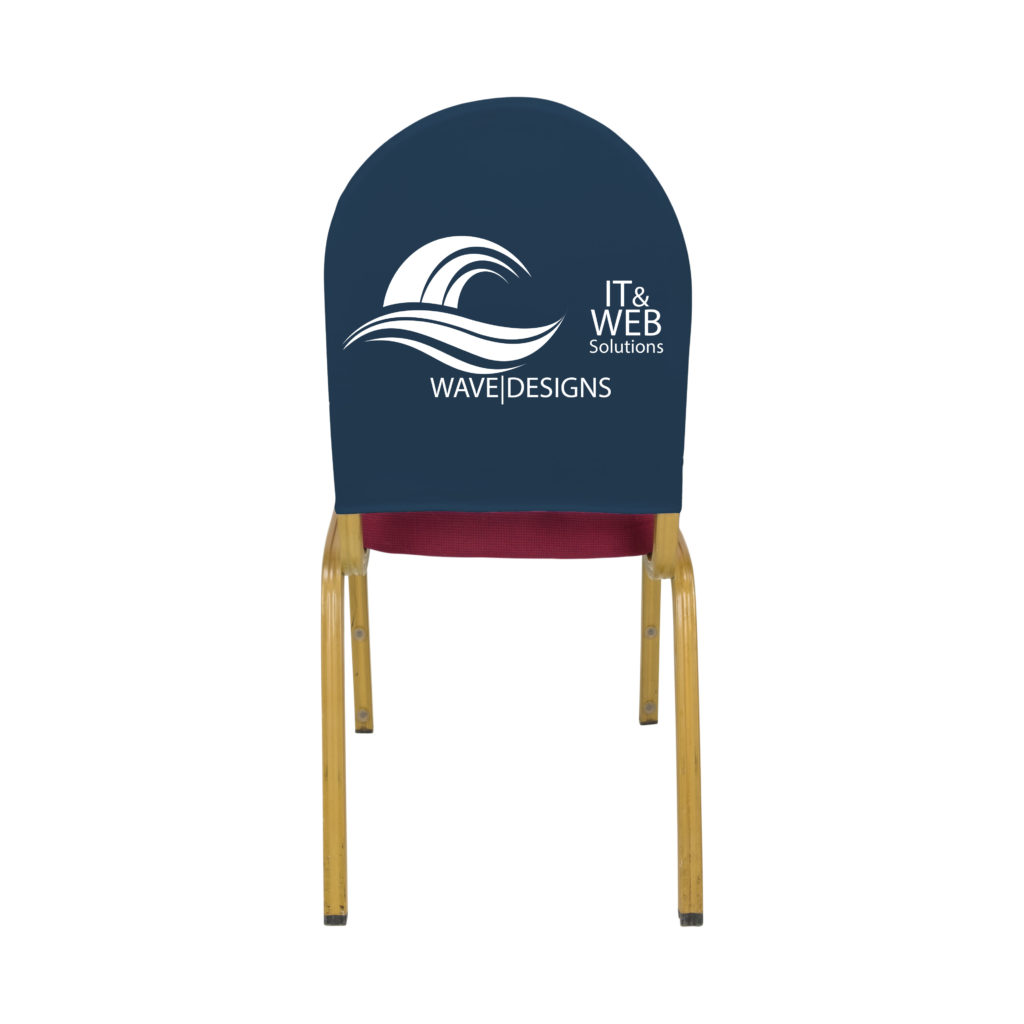Designed for branding chairs at conferences, exhibitions, sponsored dinners, etc. They can be supplied to fit any style of dining, conference, theatre, stadium, etc. chair. Printed chair hoods can be used straight on the chair or on top of a standard chair cover.