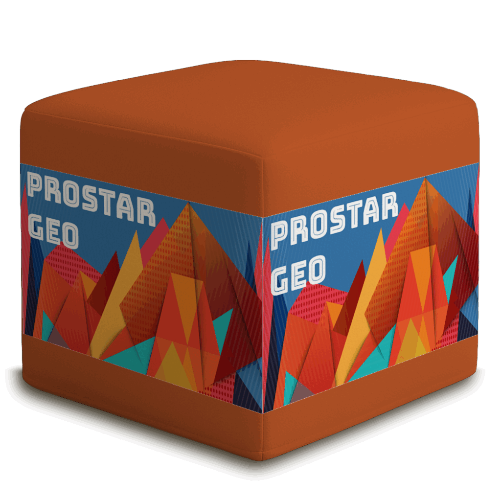Seating cubes have a full-colour printed cover, a hardwearing black fabric base with a medium density foam over a polystyrene core for lightness, strength, and comfort. All Fire Retardant Certified.
