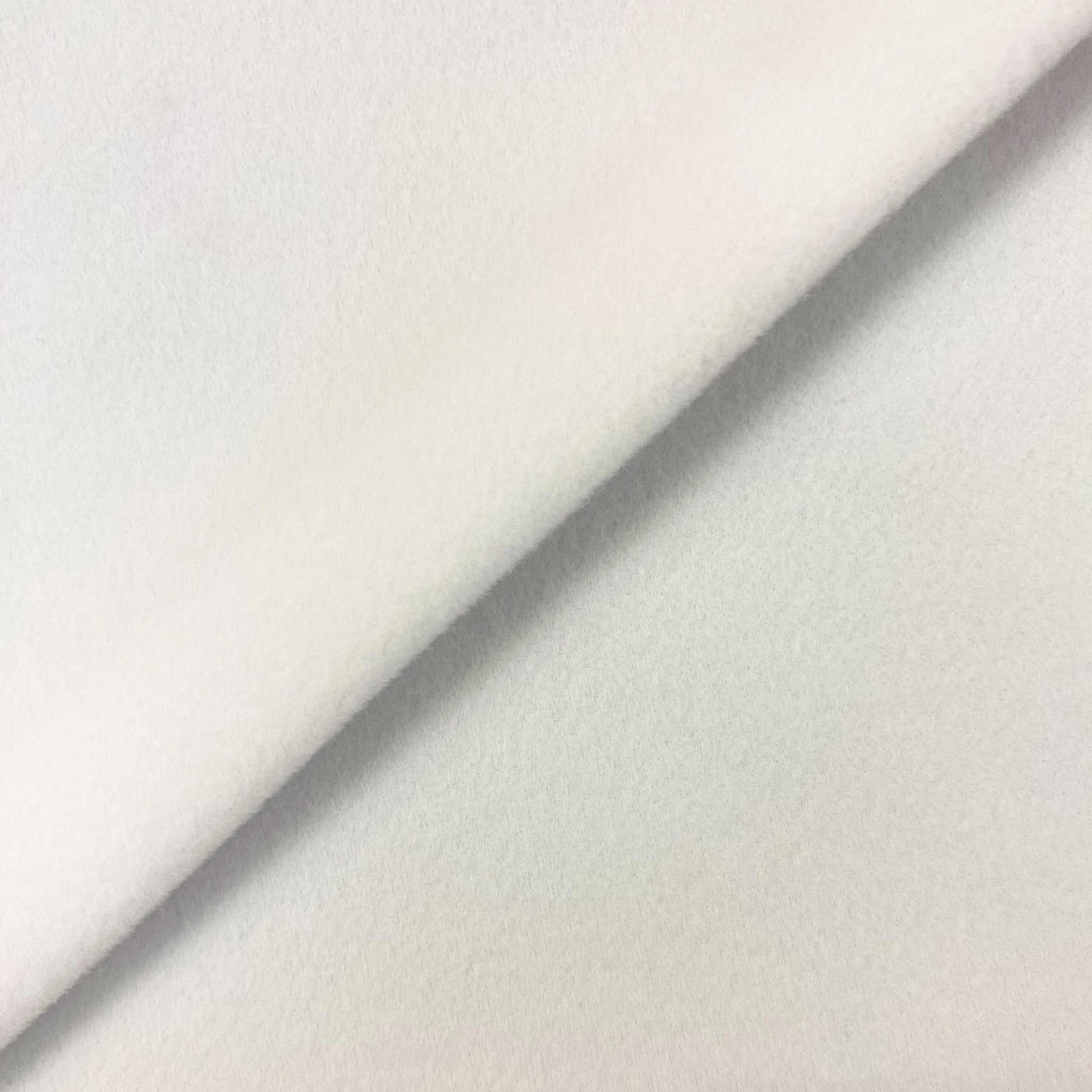 A high degree of stretch is provided by the 85% polyester 15% elastane mix. A matte finish with high opacity and weight makes it perfect for many apparel items - especially sports and activewear. The suedette finish makes this ideal for garments that require a further layer for insulation. The fabric is bright white and able to display very vivid colours.